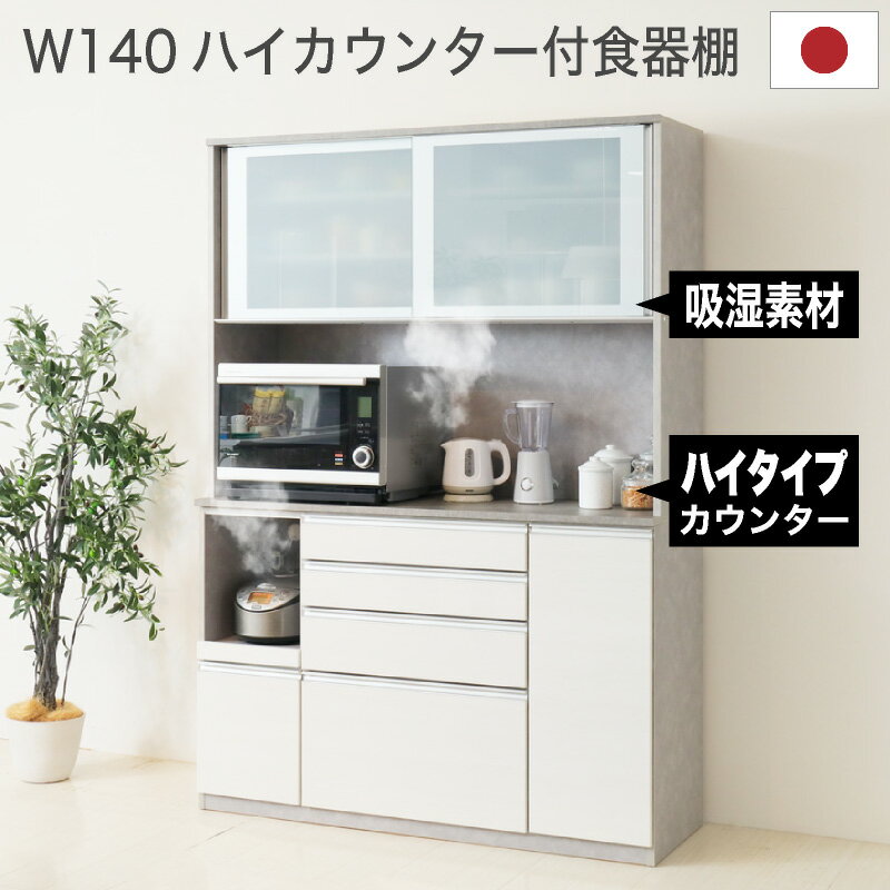 45%OFF 12/4 20時から★ 食器棚 幅140 レンジボード キッチンボード 国産 レンジ台 カップボード レンジラック おしゃれ シンプル ホワイト調 収納 キッチン収納 引き戸 スライド カップボード 炊飯器 食器 シンプル 大容量 モイス 調湿 クレイ 140レンジ