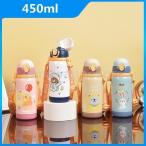 2way 魔法瓶 直飲み ストロー 子供用 可愛い 4色 トラベルポット 304 保温 保冷 通園 通学 水筒 450ml 男女兼用 ボトル アウトドア キッズ