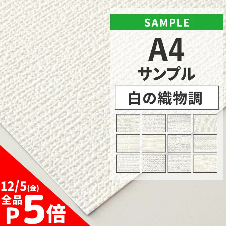 【12/5は全品ポイント5倍!】 壁紙 のりなし サンプル 白の織物調 白 ホワイト シンプル 無地 国産壁紙 クロス A4サイズ カットサンプル 色味チェック DIY 壁紙屋本舗