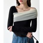 tシャツ テレコリブレイヤード長袖トップス レディース