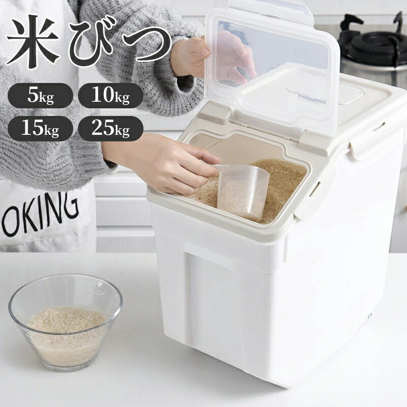 【3点15%offクーポン配布中! 米びつ 12.5kg 計量カップ付き 収納 キッチン収納 米櫃 袋ごと そのまま こめびつ 湿気防止 ホワイト 無洗米対応 一合計量 計量米びつ ライスボックス 計量 こめびつ 無洗米兼用 おすすめ お米収納 小お米収納 キッチン用品 保存容器