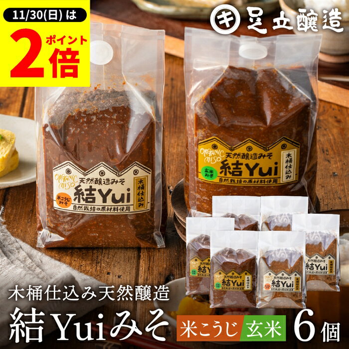 【11/30★全品P2倍】\お得な0のつく日/自然栽培原材料のみ 木桶仕込み 選べる 結Yui 無添加 味噌 (米こうじ味噌 玄米味噌) 900g×6個セット 送料無料 天然醸造 オーガニック 米麹味噌 非加熱 生みそ 化学調味料無添加 長期熟成 みそ 国産 丸大豆 有機大豆