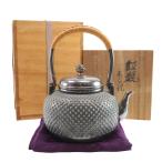 日本製 松本堂 日本製・証明書付き 純銀製 湯沸し 1,400ml 阿古陀玉霰模様 純銀保証 シルバー 銀瓶 茶器 茶道具 煎茶道具 湯沸かし 送料無料