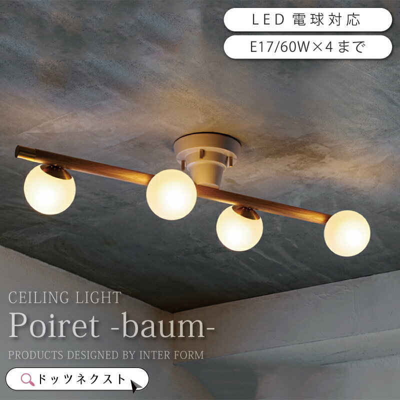 【10%OFFクーポン★23:59まで】 シーリングライト インターフォルム ガラス おしゃれ ウッド 照明器具 天井照明 照明 4灯 led対応 ダイニング カウンター キッチン Poiret -baum- ポワレ-バウム- LT-4417 LT-4418 LT-4419 NA BN 新生活 引越
