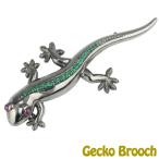 ブローチ ヤモリ 家守 ゲッコー 爬虫類 シルバー SV925 エメラルド ルビー アニマル 動物 ハロウィーン 爆買