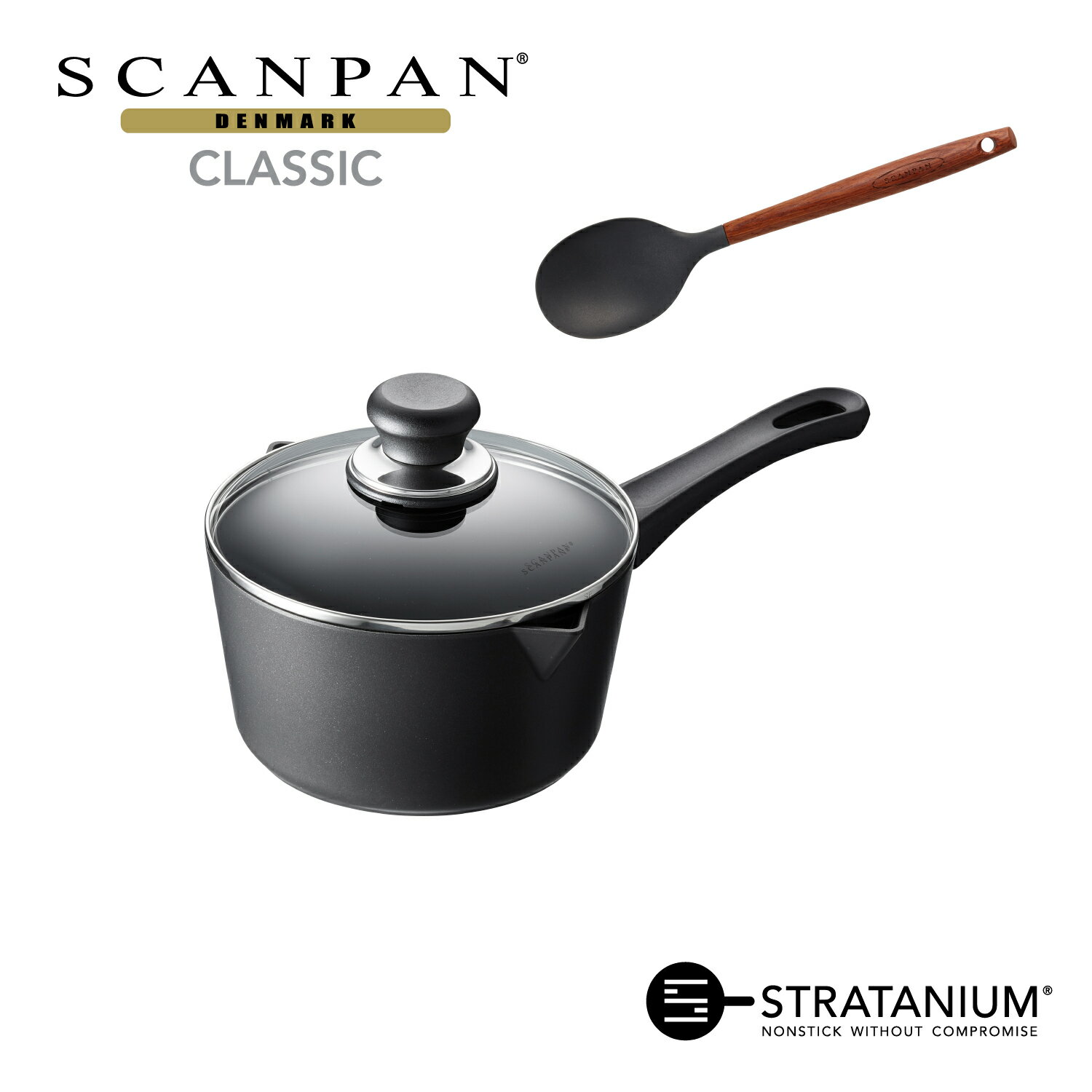 ★期間限定シリコンスプーンプレゼント★【メーカー公式】スキャンパン Classic シリーズ ソースパン 18cm (蓋付) 片手鍋 ミルクパン 深型 少量 煮物 煮込み スープ 環境に配慮 オーブン調理 ノンスティック 安全なフライパン フッ素加工 SCANPAN デンマーク STRATANIUM