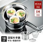 片手鍋 18cm 深型 ih対応 ガラス蓋 ザル 目皿付き ステンレス製 湯切り 調理鍋 ガス火 IH オール熱源対応 大容量 便利 キッチンツール 鍋 調理器具 新生活