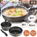 フライパン ガス 深型 セット 26cm ガス火対応 アイリスオーヤマ フライパンセット 鍋 片手鍋 ガス火 3点 ダイヤモンドコート 取っ手が取れる DCG-S3S