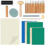 YTOPRO 版画彫刻セット 木版画 彫刻刀12本入り ゴムローラー ベニヤ板2枚 両面使用可能 ビニール板2枚 版画用宣紙 バレン2個 ローラ