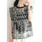 tシャツ 肩パッド入り版画アートのシアーカットソートップス レディース