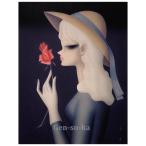 東郷青児 「 バラ一輪 」 リトグラフ 版画 版画 洋画 人物 花 帽子 美人画 人気 昭和 送料無料