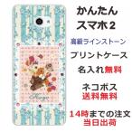 かんたんスマホ2 ケース A001kc カバー ラインストーン かわいい らふら 名入れ 牛 お花