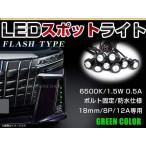 12V 超小型 イーグルアイ LED 18mm スポットライト グリーン/緑 フラッシュ 防水仕様!ブラックボディ 牛目 8個セット
