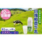 ふるさと納税 【定期便 12回 週1】山地酪農牛乳(1L×4本) 低温殺菌 牛乳 高知県南国市