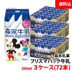 送料無料 森永牛乳 200ml 3ケース(72本) プリズマパック 牛乳 生乳100% 常温保管可 取り寄せ ロングライフ牛乳 森永乳業