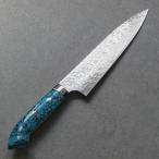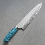 包丁 牛刀 210mm 佐治打刃物 槌目 スーパーゴールド2 粉末ハイス鋼 7寸 ブルーターコイズ柄 ダイヤ仕上 佐治武士 日本製 越前打刃物