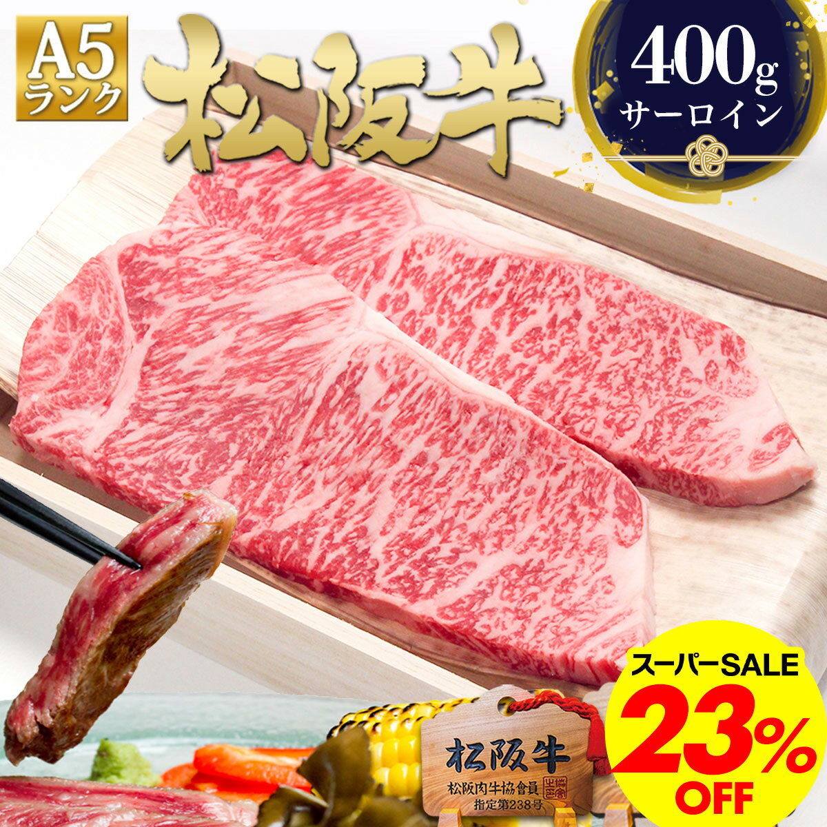 【スーパーセール●11%OFF】松阪牛 黄金の サーロイン ステーキ 200g×2枚 牛肉 肉 ステーキ肉 ギフト 2026 黒毛和牛 和牛 松良 誕生日 プレゼント 松坂牛 高級 サーロインステーキ 食品 お返し 和牛 贈り物 お取り寄せ グルメ 人気 食べ物 ホワイトデー 母の日 父の日