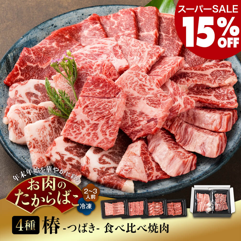 \期間限定15%OFF/【送料無料】椿 -つばき- 食べ比べ焼肉 4種 計400g|2-3人前|A5等級 鹿児島県産黒毛和牛 ミスジ・国産黒毛和牛 ハラミ・鹿児島県産上村牛 バラ・モモ 坊津の華付き|お歳暮・冬の特選ギフト|カミチク ファーマーズマーケット