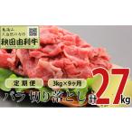ふるさと納税 牛肉 バラ(カルビ) 秋田県 にかほ市 《定期便》9ヶ月連続 秋田由利牛 バラ切り落とし 3kg(1kg×3パック)