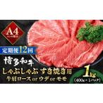 ふるさと納税 牛肉 ロース 福岡県 那珂川市 定期便・全12回 A4ランク以上 博多和牛 スライス しゃぶしゃぶ すき焼き用 1kg(500g×2) 1kg/定期便・全12回