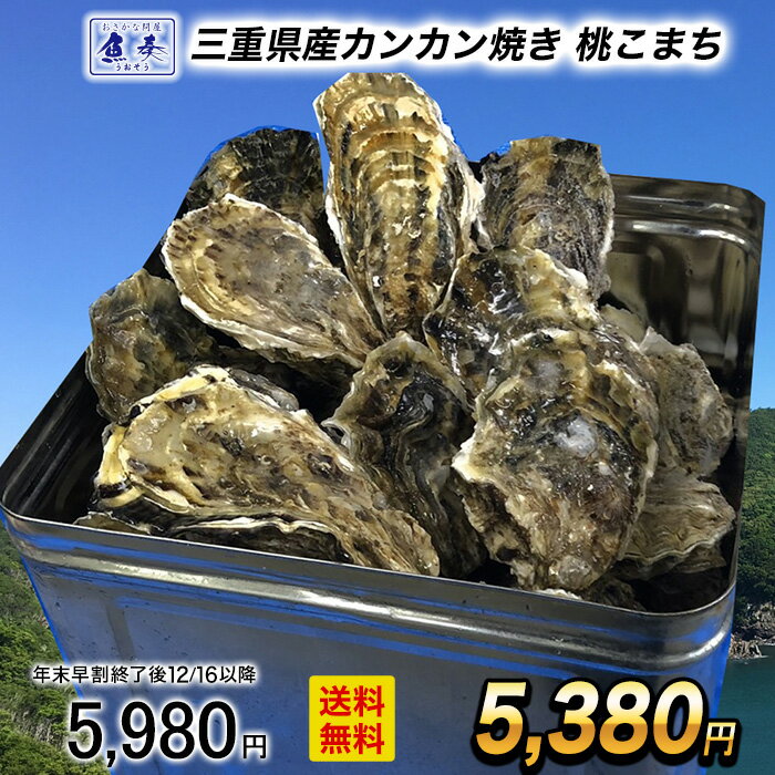 牡蠣 カンカン焼き セット サイズ無選別 5kg(60個前後入) 冷凍牡蠣 送料無料 桃こまち 鳥羽産 中缶入(牡蠣ナイフ・片手用軍手付き)一斗缶 旬凍桃こまち