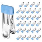 uxcell 衣服ペグ 衣服クリップ 洗濯用クリップ ヘビーデューティー ラバーコーティング ステンレス鋼 55mm ブルー 30個入り