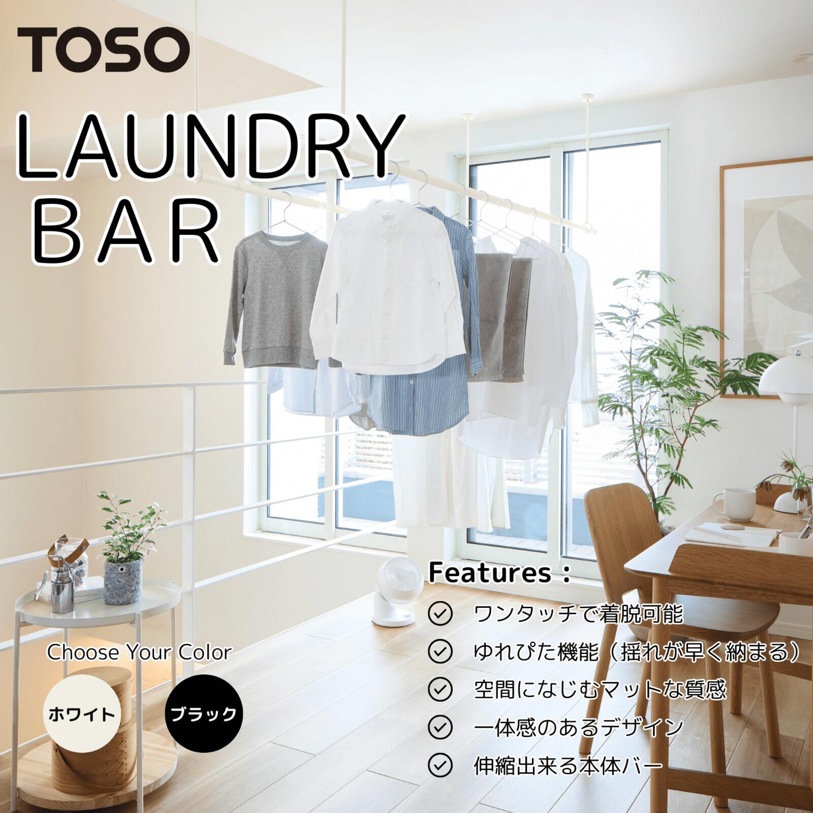 [先着3名様26%offクーポン!1/1 00:00-7h] ハンギングバー ランドリーバー 室内物干し 幅178×高さ27cm ディスプレイバー 洗濯物干し 収納 ディスプレイ トーソー 許容荷重10kg 天井付け 日本製 【TOSO】【メーカー直送/変更/キャンセル/返品不可】