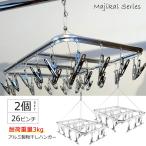 アルミ26ピンチ物干しハンガー 2個セット 洗濯 収納 洗濯バサミ ズボン タオル 丈夫 軽量 軽い 衣類 スリム おしゃれ 物干し竿