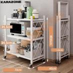 折りたたみスチールワイヤーラック キャスター付き 移動式 3 段 / 4 段 / 5 段選択可 幅 70× 奥行 35cm オープンシェルフ キッチン収納・物置に最適 収納棚
