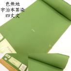 色無地 反物 生地 宇治本茶染 落ち着いた新緑色系 緑色 グリーン色系 彩遊染 宇治特産物の証 本染の証 茶乃葉 染元 炭山工房 絹100% 反巾約36.5cm 長さ約15m