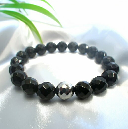 SUPER-OFF20%OFF テラヘルツ10mm1石&天然石ブラックオニキス10mm キラキラカット ブレスレット 【メンズ通常サイズ内周約18cm】 テラヘルツ&天然石のダブルパワー