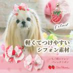 犬 アクセサリー 春 角度一定スタンド式 いちご柄シフォンバレッタリボン シフォン素材 ふんわり ストロベリー ギフト 小型犬 撮影 ピンク ホワイト LB-310