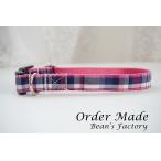 犬用首輪/ハーネス アムールチェック オーダーメイド品 子犬 小型犬 中型犬 10mm幅 15mm幅 20mm幅 ピンク 紺