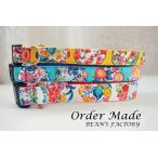 犬用首輪/ハーネス フラワーパッチ柄(全3色) (10mm/15mm/20mm) オーダーメイド品 子犬 小型犬 中型犬 花柄 かわいい 春