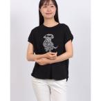tシャツ EGLANTINE 犬デザイン刺繍 フレンチスリーブカットソー レディース