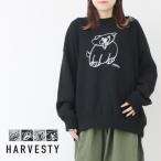 ハーベスティ HARVESTY プリントスウェットシャツ A52521/A52522 長袖 犬 猫 プリント 手描き コラボ レディース メンズ 男女兼用 2025秋冬