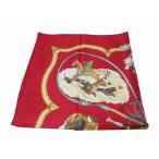 HERMES エルメス カレ90 LE LAISSER COURRE 狩猟 犬 馬 動物柄 大判シルクスカーフ レッド系マルチカラー<USED>【送料無料】