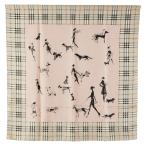 バーバリー ノバチェック 犬 散歩 モチーフ スカーフ ベージュ ピンクベージュ シルク レディース BURBERRY 【中古】