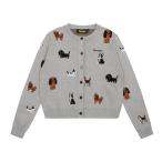 ニットカーディガン レディース ボレロ 犬柄 アウター クルーネック セータージャケット 保温 暖かい セーター羽織 ショート丈 ゆったり