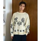 セーター ニット low gauge reversible dog sweater / リバーシブルハンドニット風落書き犬ニット メンズ レディース