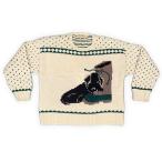 80's 香港製 L.L.Bean エルエルビーン ハンドニット セーター バーズアイ ビーンブーツ 犬 ウール100% XL [ta-1642]