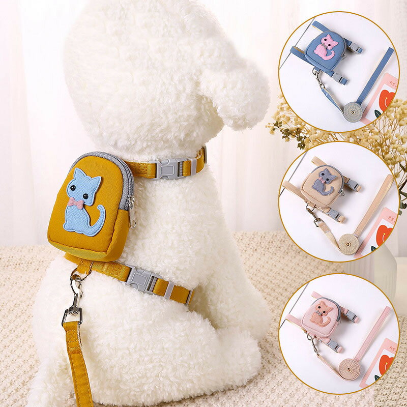 在庫処分特価・ 翌日発送 犬服 ワンちゃん服 ベストハーネス 小型犬 リード セット かわいい もこもこ ポーチ付き 散歩道具が入る 通気性軽量 ソフト 束縛感なし 抜けない ベスト ナイロン製リード 安全 散歩用 調節可能 簡単着脱 迷子防止リュック・ハーネス