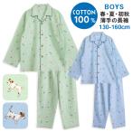 パジャマ キッズ 男の子 綿100% 長袖 春 夏 初秋 前開き ボタン 犬柄 薄手のシャツ 子供 ジュニア ボーイズ おそろい メール便なら 送料無料