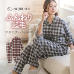 犬印本舗 マタニティ ふんわり 起毛 長袖 パジャマ 前開き チェック柄 綿混 スナップボタン ロールアップ チェック柄 秋 冬 春 おしゃれ 可愛い 産前 産後 授乳