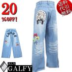 夏新作 GALFY.E.L.N/ガルフィー 部族長 人気キャラアップリケ刺繍 ワイドシルエット USED加工 DPデニムパンツ ジーンズ 黒/ブリーチ L中型犬/XL大型犬 152031