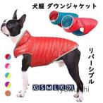 犬服 リバーシブル ダウンベスト ライトダウン ジャケット ドッグウェア 防水 反射 冬 リード穴あり 面ファスナー 防寒 大型犬 中型犬 小型犬