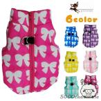 ペットウェア ダウン風ベスト 犬服 ジップアップ 中綿入り 防寒 ペット服 ペット用 秋冬 リボン柄 チャック開閉 背中側開閉 かわいい おしゃれ お