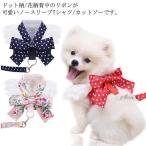 犬用 ハーネス ワンピース 牽引ロープ 牽引ロープ付き メッシュ マジックテープ式 リボン付き 通気 ドット柄 ペット用品 小型犬 中型犬 散歩 お