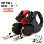 伸縮リード ダブルリード 2頭引き 巻き取り式 ライト付き ゴミ袋収納付き 3m 犬用 猫 ペット用品 散歩紐 ドッグリード 自動巻き取り 夜間 夜道