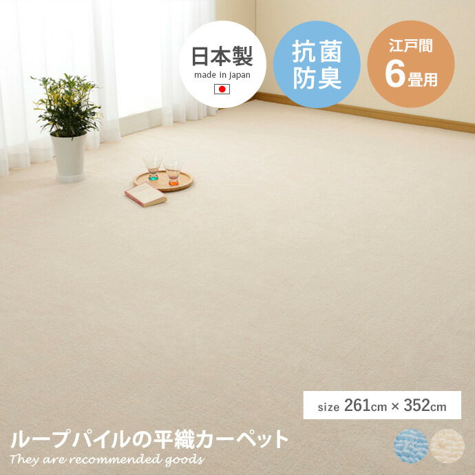 【クーポンで16%OFF! 1/12 0:00~23:59まで★】カーペット ラグ 絨毯 フロア マット ループパイル 平織 ミーテ 抗菌 防臭 フリーカット 日本製 江戸間8畳 切れる 床暖房 ホットカーペット対応 リビング ダイニング 子供部屋 寝室 ペット 犬